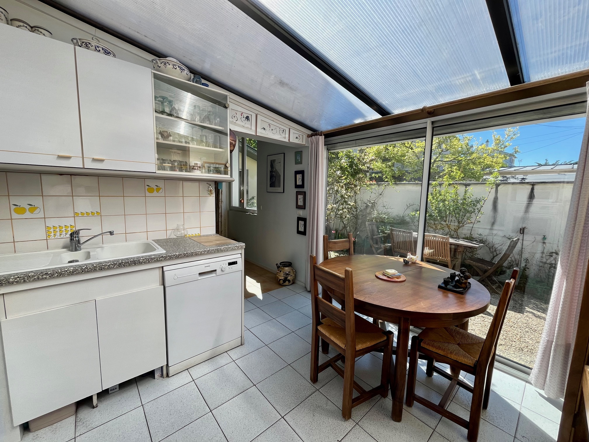 Mieux qu'un appartement, une maison individuelle de 49 m² édifiée sur un terrain de 138 m². Elle comprend de plain pied : une entrée, un salon, une cuisine équipée avec coin repas, une chambre, une petite pièce en enfilade pouvant servir de chambre de bébé, de dressing ou bureau, et une salle d'eau avec WC. Toutes les pièces sont tournées vers le jardin orienté ouest, idéal pour profiter à l'extérieur de belles journées ensoleillées. Chauffage électrique par le sol. Eau chaude sanitaire fournie par un ballon électrique. Fenêtres double vitrage, volets électriques. Au fond du jardinet un cabanon en bois. Honoraires charge vendeur. Dominique Sousa (EI) agent commercial RSAC Créteil 477608269.