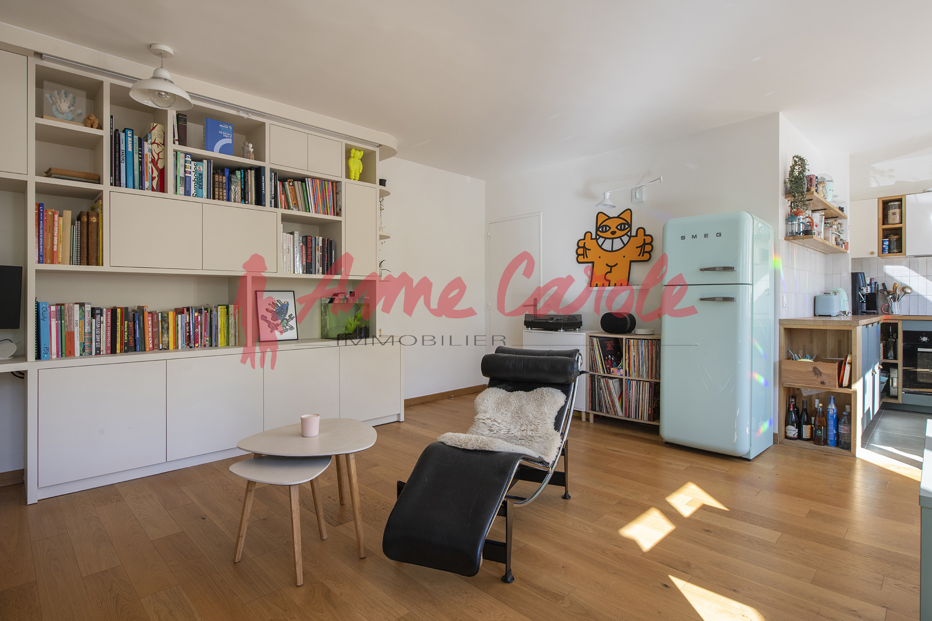 L'appartement a été complètement repensé avec aucune perte de place, il est composé d'une entrée, un grand séjour avec cuisine ouverte entièrement équipée, deux chambres avec rangements, une salle d'eau et un WC indépendant.